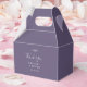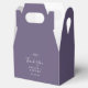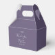 This minimal leaf plum purple thank you wedding favour box is perfect for a boho wedding reception. The jewel tone design features a simple greenery leaf silhouette in a dark blue violet purple with minimalist boho style. Personalise the favour boxes with your names, the event (if applicable), and the date. These favour boxes can be used for a wedding reception, bridal shower, or any event!