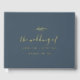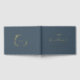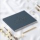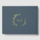 Minimal Leaf Slate Blue Gold Foil Monogram Wedding Guest Book
