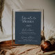 This minimal leaf slate blue signature drinks poster sign is perfect for an elegant wedding. The design features a simple greenery silhouette in a dark grey blue with classic minimalist style.