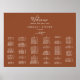 This minimal leaf terracotta alphabetical seating chart poster is perfect for a boho wedding. This horizontal sign can be used to organise your guests alphabetically or by table number by changing the headings. The design features a simple greenery leaf silhouette in earthy burnt orange with minimalist desert bohemian style. This wedding poster includes enough room for up to about 100 guests. Make room for more (or less) guests by clicking the "customise" button and decrease or increase the size of the font. In addition to the placement of each guest, personalise this sign with the names of the bride and groom and the wedding date.