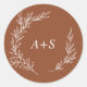 These minimal leaf terracotta monogram envelope seals are perfect for a boho wedding. The design features a simple greenery leaf silhouette in earthy burnt orange with minimalist desert bohemian style. Personalise the label with the initials of the couple.