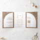 Minimal Line Art Leaf Arch Beige Wedding Tri-Fold Invitation