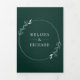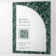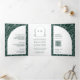 Minimal Line Art Leaf Arch Emerald Green Wedding Tri-Fold Invitation