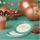 Add some theme to your party while making clean up a breeze. Cream and gold circles frame the typography design on this plate. It features your grad's name, school, and year. It is all nestled on a beautiful trendy hypnotic teal marbled abstract background.
