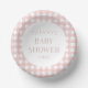 Minimal Minimalist Pink Plaid Baby Shower Paper Plate