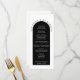 Chic minimal modern menu for your wedding reception, engagement party or rehearsal dinner featuring "Eat Drink & Be Married" in elegant serif typography, your menu in simple white typography within a black arch frame and your names and wedding date.