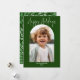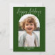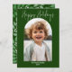 A modern Merry Christmas photo card with a photo arch on the front. The modern design on the back includes branches and berries. A large modern calligraphy font is used for the text.
