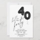 Minimal Modern Black White 40th Birthday Invitation