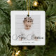 Minimal Modern Black White Christmas Photo Ceramic Ornament