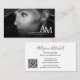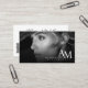A bold, minimalist square business card designed for photographers. The front features a full-bleed black and white portrait photo with custom initials and clean typography. The back offers all essential contact details, social handles, and a scannable QR code for easy access to your portfolio, pricing, and booking info. Designed for impact and professionalism, this modern layout helps clients remember you instantly.