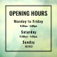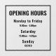 Featuring clean black typography and a timeless layout, this modern design ensures your hours are visible and professional.