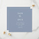 Effortlessly blending minimal and contemporary aesthetics, this striking Minimal Modern Dusty Blue Wedding Save the Date card subtly alludes to an elegant yet simple ceremony that awaits. The luxurious, refined design features high-end typography, creating a captivating balance between classic and forward-thinking styles. Rooted in minimalist principles, this formal announcement card radiates sophistication without an overwhelming complexity. The backdrop's soothing dusty blue hue beautifully complements the crisp, clean lines, evoking a sense of tranquil elegance, transforming your wedding announcement into a timeless memento. Customise text font, size, placement, and background colour to your liking using the Design Tool. For matching items, please see the Dusty Blue Wedding invitations collection.