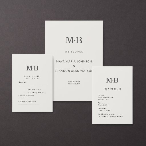 Featuring a refined monogram, soft neutral ivory tones, and clean typography, this announcement is perfect for civil weddings, city elopements, courthouse ceremonies, and modern minimalist celebrations. The design offers a calm, editorial look that feels thoughtful, personal, and effortlessly refined.