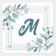 Minimal Modern Floral White and Green Monogram Square Sticker