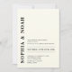 This invitation features a sophisticated ivory background with a minimalistic design. The names of the couple are highlighted in bold, elegant typography, adding a touch of modern elegance to the invitation.