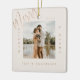 Minimal Modern Married & Merry Gold Script 2 Photo Ceramic Ornament