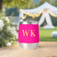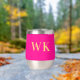This is a minimal, modern, two initials, monogram design. It is in trending hot pink and gold. The monogram letters are in simple and stylish modern typography. Perfect as a personalised gift or ideal as a new drinkware accessory for yourself. To personalise, simply add your initials by typing them into the personalise this text box. To customise further, check the design editing tool, where you can change the colour or font. If you need help with personalisation, matching products, or for a custom design, contact me via zazzle chat or email: ursuladawnmoon@gmail.com