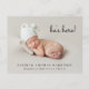 Minimal photo birth announcement postcard to announce the arrival of your baby to family and friends. Your newborn's photo fills the front and is overlayed with "she's here!" "he's here!" or "I'am here!" in a contemporary script (you can move this text to another area on the card depending on your photo by selecting "edit in design tool"). Add his or her name, arrival date and birth stats below. On the reverse side, add an additional photo, a "welcomed by" message, the parent's and siblings first names and a personalised thank you message..