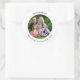 These awesome round return address labels with your favourite photo and your family name and address in blue will make addressing new home announcements, letters and cards just that much easier!  They are so easy to just stick on the envelope!   The font is crisp and clean making them look modern yet traditional.  It is so easy to make these your own.  Simply select Personalise this template, upload your photo, type in your family name and your address.  It's that easy!