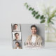 Minimal modern graduation party invitation postcard featuring the graduate's photo overlayed with a strip of three smaller square photos and "Graduate," their name, school and class year in simple typography. On the reverse side, add the party details.