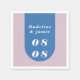 Our minimal, bold retro style wedding napkin is perfect for the trendy couple who loves standing out and making a bold statement. Our design features a bold bright blue and light purple colour combo. A simple abstract arch shape creates a bold look with the wedding date displayed boldly in white large font along with the couple's name. Designed by Moodthology Papery