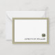 Modern minimalist custom flat note card design features sage green and black monogram medallion with name below in classic block typography that can be personalised with your monogram initial, name or custom text. Space for your handwritten note is included and the back of the card features a complimentary monogram medallion.