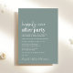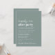 Minimal modern sage green wedding announcement and reception invitation featuring "Happily Ever After Party" in a blend of a contemporary white script and bold white typography. Personalise your invitation and add your names in a signature-like script.
