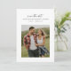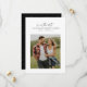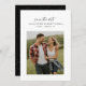 Simple, minimal and chic, this one-photo vertical save the date is the perfect way to announce your engagement and upcoming wedding to friends and family. The modern script "save the date" sits above your custom type with plenty of room for names, wedding date, event location and any other info you'd like to share like a website. The back is a matching black with a white dash pattern.