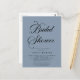 Minimal Modern Script Bridal Shower Invitation. Shown in dusty blue, however, many colours will be available. You can also easily change the background colour in the design tool to coordinate with your wedding theme.