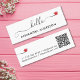 Minimal Modern Script Hello Heart QR Code Mini Business Card