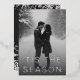 Create a personalised and heartfelt holiday card with this elegant design. Featuring your own special photo on the front, this card captures the joy and warmth of the season. The silver foil text proclaiming "Tis the season" adds a touch of festive sparkle, while the soft black background and corner splashes of white snowflakes create a winter wonderland atmosphere. The modern white text ensures a clean and contemporary look. This card is the perfect way to share your holiday greetings with loved ones, creating lasting memories of the season. Created by Simply Farmhouse Press.