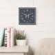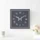 A roman numeral styled wallclock featuring a minimal style monogram framed in the centre. Underneath this towards the bottom is the established date of your family. The background contains an anchor grey. The outside border frame is silver to compliment the background along with the silver monogram. A great way to compliment your home with style and simplicity.