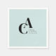 Minimal, monogram, handwriting font, grey-blue, wedding napkin. Personalised with your name and date.