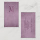 Simple minimalist professional business card with a gold monogram on a lilac pastel purple hue background. Suitable for almost any occupation where a minimal modern aesthetic is desired. Add your occupation title to the back of the card. Great for consultants, realtors, event planners, beauty salon hair stylists, photographer, and corporate titles.