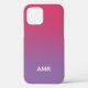 Minimal raspberry pink to light purple gradient features your monogram in a stylish white sans serif font near the bottom. Add your initials, name, or other text in the sidebar. Other case styles and models are also available in the sidebar.