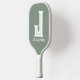 This minimal monogram pickleball paddle in sage green is professional, bold and classic with your first initial in a fabulous modern font and your name in a coordinating font in white. Uniquely you!