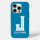 This minimal monogram teal iphone 15 pro case is trendy yet and professional. It features your first initial in a bold trendy font and your name in a coordinating classic font in white. It's simple and classy.
