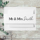 These minimal Mr & Mrs invitation belly bands feature bold black lettering and elegant wedding script. To edit the text click on the personalise button. If your surname is a different length please see other belly bands in this collection. If you need further help message me and I'll upload your surname.