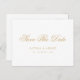 White Islamic Muslim Modern Wedding Golden Save The Date postcard. This is an elegant, stylish announcement with a classic gold script calligraphy font. Minimalist. Clean. Card colour can be personalised and you can edit the font colour, type and size too for this template. You can change all the information that is written on the front and the back of the post card. This product can be used for nikah, walima, mehndi or shaadi ceremonies or even to announce engagement party. Made at Her Line For Design store by Ayesha.
