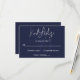 This elegant navy blue and white RSVP card is perfect for a modern wedding. the simple design features elegant white calligraphy on a navy blue background with a monogram.
