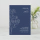 Minimal Navy Blue White Wildflowers Wedding Invitation