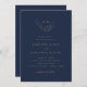 Invite friends and family to your wedding ceremony with this classic and elegant navy and gold monogram invitation.
