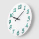 Minimal Numbers Gray White Grey Teal Metallic Large Clock