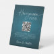 Minimal Ocean Blue Wedding Honeymoon Fund QR Code Pedestal Sign