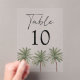Bring a chic, tropical vibe to your reception with our Modern Minimal Palm Tree Wedding Table Number Cards. Featuring the table number in bold, minimalist style above a trio of elegantly sketched palm trees, these cards offer a fresh and sophisticated look on a frosted or transparent acrylic background. Designed to coordinate seamlessly with our Minimal Palm Tree wedding collection, these table numbers are perfect for beach and destination weddings. Customise each table card individually by adding the table number, and add each one to your cart for a unique, personalised set. Please note: this table card does not come with a stand.