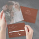 Introducing the all-in-one terracotta wedding invitation - the perfect combination of timeless elegance and practicality. This wedding invite lets you showcase your unique style and wow your guests with a presentation that is an instant classic. Crafted with high-quality materials and imprinted with the couple’s initials, script heart typography, and modern font, this trifold wedding invitation displays sophistication and sets your special day apart from the rest. With it, you get the convenience of a one-stop-shop, giving you more time to focus on other wedding preparations. Additionally, this invitation is complete with an RSVP that can be torn off and sent back – a time-saving convenience that will guarantee a smooth and stress-free event.
