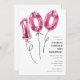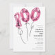 Minimal Pink 100 Balloon 100th Birthday Party Invitation