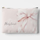 This is a stylish and elegant personalised makeup pouch featuring a soft pink background adorned with a large, delicate pink ribbon bow. The design exudes a feminine and sophisticated charm, perfect for carrying your essential cosmetics and beauty items. The pouch can be customised with a name, making it a unique and thoughtful gift. Background image by Freepik