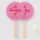 Retro wedding fans featuring modern retro typography in pink and red colour.