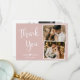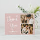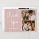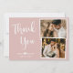 Elegant, Minimalist Hand Lettered Script Dusty Pink White Wedding Photo Collage Thank You Card. Stylish wedding multi photo thank you card template featuring two (2) photo on the front and one (1) photo on the back side. With the text "Thank You" in a pretty hand-written typography script font in white on pastel blush pink, dusty rose pink colour background. Personalise the custom name and thank you message. If you prefer to handwrite your note, just delete the sample text to make more space. If You need help or matching item, please contact to designer!